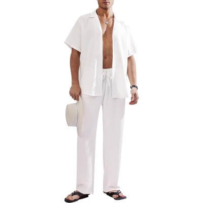 Men's 2 Pieces Casual Shirts and Pants Set Short Sleeve Button Down Shirt Fashion Textured Beach Pants Summer Outfits