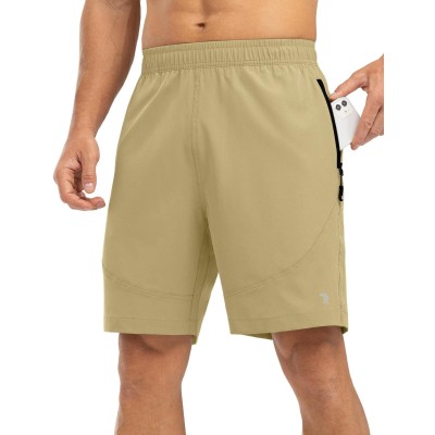 Mens Athletic Workout Gym Shorts 7 Inch Inseam Running Sweat Sport Shorts for Men with Zipper Pockets