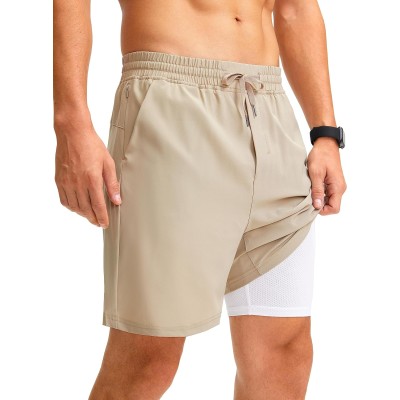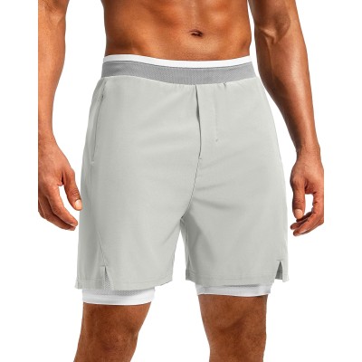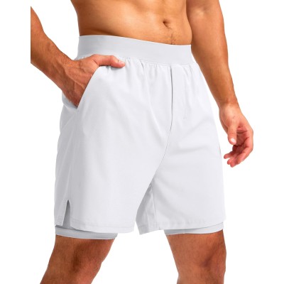 Men's 2 in 1 Running Shorts 7" Lightweight Workout Athletic Gym Shorts for Men with Zipper Pockets