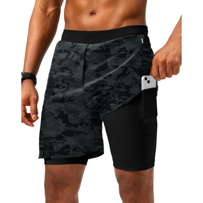 Men's 2 in 1 Running Shorts with 4 Pockets 5 Inch Quick Dry Gym Active Workout Athletic Shorts for Men with Liner