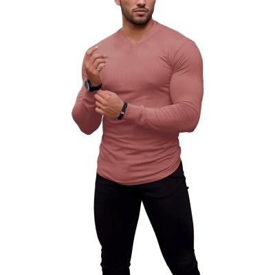 Men's Muscle Stretch Shirts Long&Short Sleeve V Neck Slim Fit Stylish T-Shirts Casual Thermal Underwear
