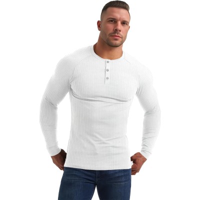 Men's Slim Fit Henley Shirt Long&Short Business Sleeve Casual 3 Metal Buton Placket Casual Stylish T-Shirt