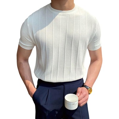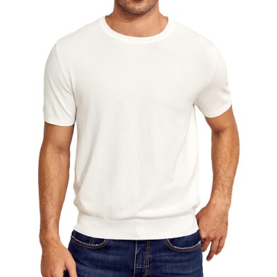 Mens Short Sleeve Knit T-Shirts Crew Neck Slim Fit Stretch Pullover Sweater Casual Solid Basic Knitwear
