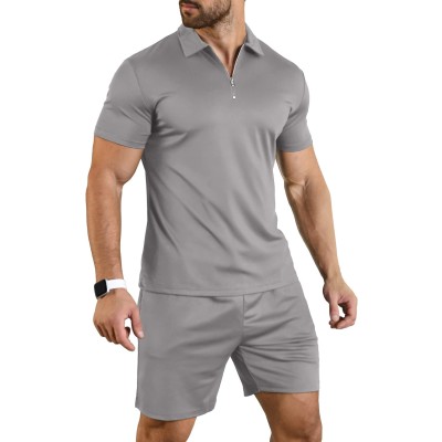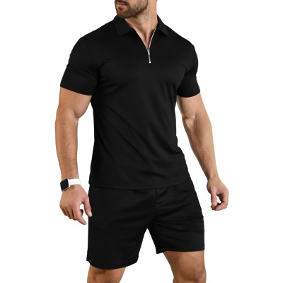 Mens 2 Piece Zip Tracksuit Polo Shirt and Shorts Sets Short Sleeve Summer Casual Outfit
