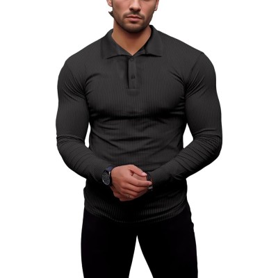 Men's Muscle Slim Fit Polo Shirts Long&Short Sleeve Stretch T-Shirts Casual Stylish Tee for Golf Workout