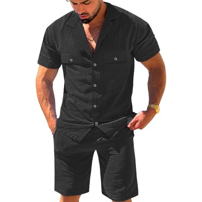 Men's Summer Beach Vacation Outfit Set with Breathable Fabric Fashion Casual 2 Piece Short Set for Men