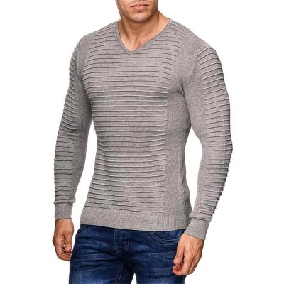 Mens V Neck Sweater Knit Ribbed Lightweight Cable Pullover Slim Fit Stripe Long Sleeve Sweater