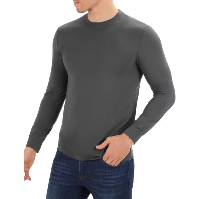 Mens Basic Solid Rayon Crewneck Long Sleeve Casual T-Shirt
