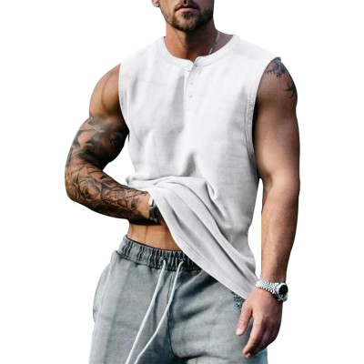 Men's Casual Tank Top Shirts Slim Fit Sleeveless Button Up Workout Gym Bodybuilding Muscle Athletic Tee Shirt