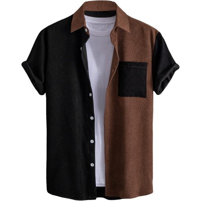 Men's Short Sleeve Button Down Shirt Pocket Front Color Block Collared Shirt