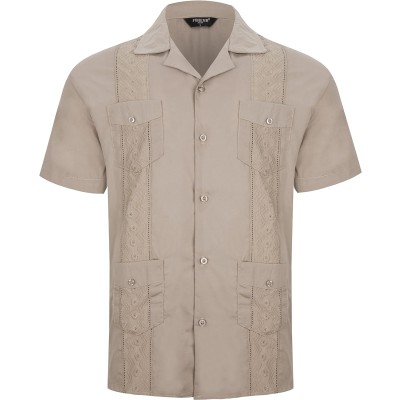 Mens Guayabera Shirt Casual Cuban Short Sleeve Button Down Embroidered Beach Shirts