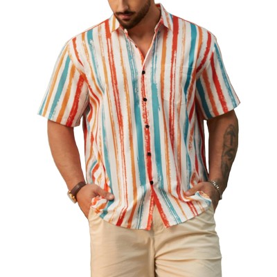 Men's Striped Shirts Casual Short Sleeve Button Down Summer Hawaiian Shirts