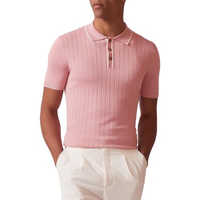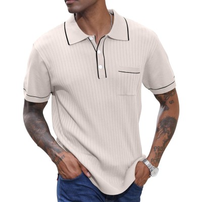 Men's Knit Polo Shirts Casual Short Sleeve Lightweight Ribbed Golf Shirts Texture Tops with Pocket